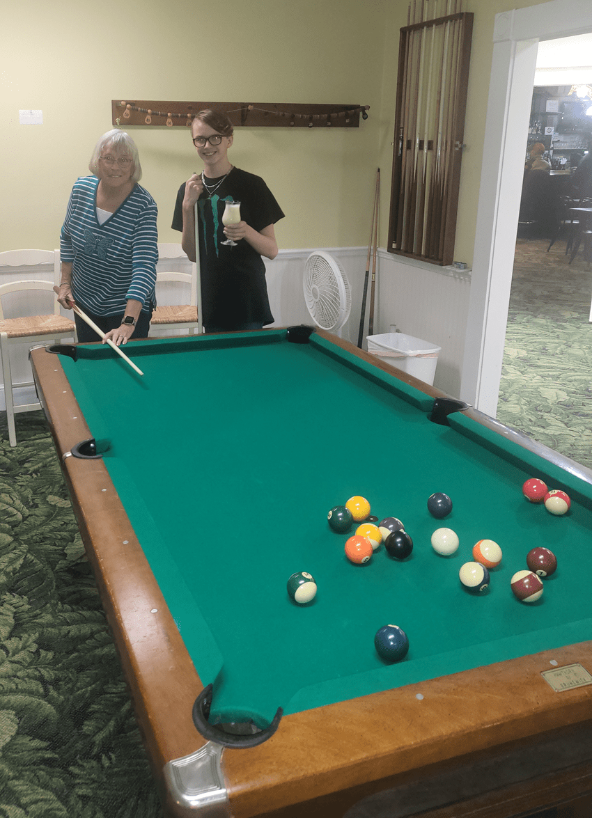 Grandma, Myles, and Grandpa visited Disney Springs and had a fun time and plenty of stuff. Including food and drinks! He also got a Stitch. Take a look. Earlier that weekend, Grandma and Myles had a game of pool at the Sweetwater Clubhouse…Myles won! Of course, Grandpa did too, but I won’t mention that outcome. 😁